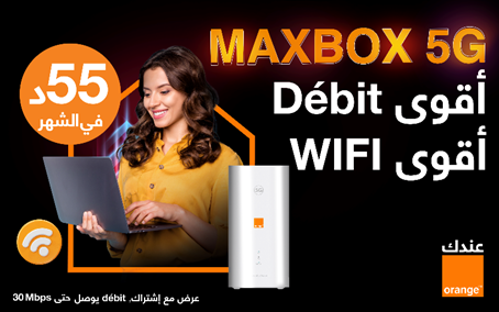 وفي إطار إستعمالات 5G في المنزل، تطلق أورنج تونس جهازها المتطوّر MAXBOX 5G، المزوّد بتقنية WiFi 6/فئة 18، وهو الأوّل من نوعه في تونس مع خيار تقنية Turbo المحسّن للأداء للمهتمين وعشاق الألعاب الإلكترونية والمولعين بألعاب الفيديو ومستخدمي خدمات البث الرقمي.