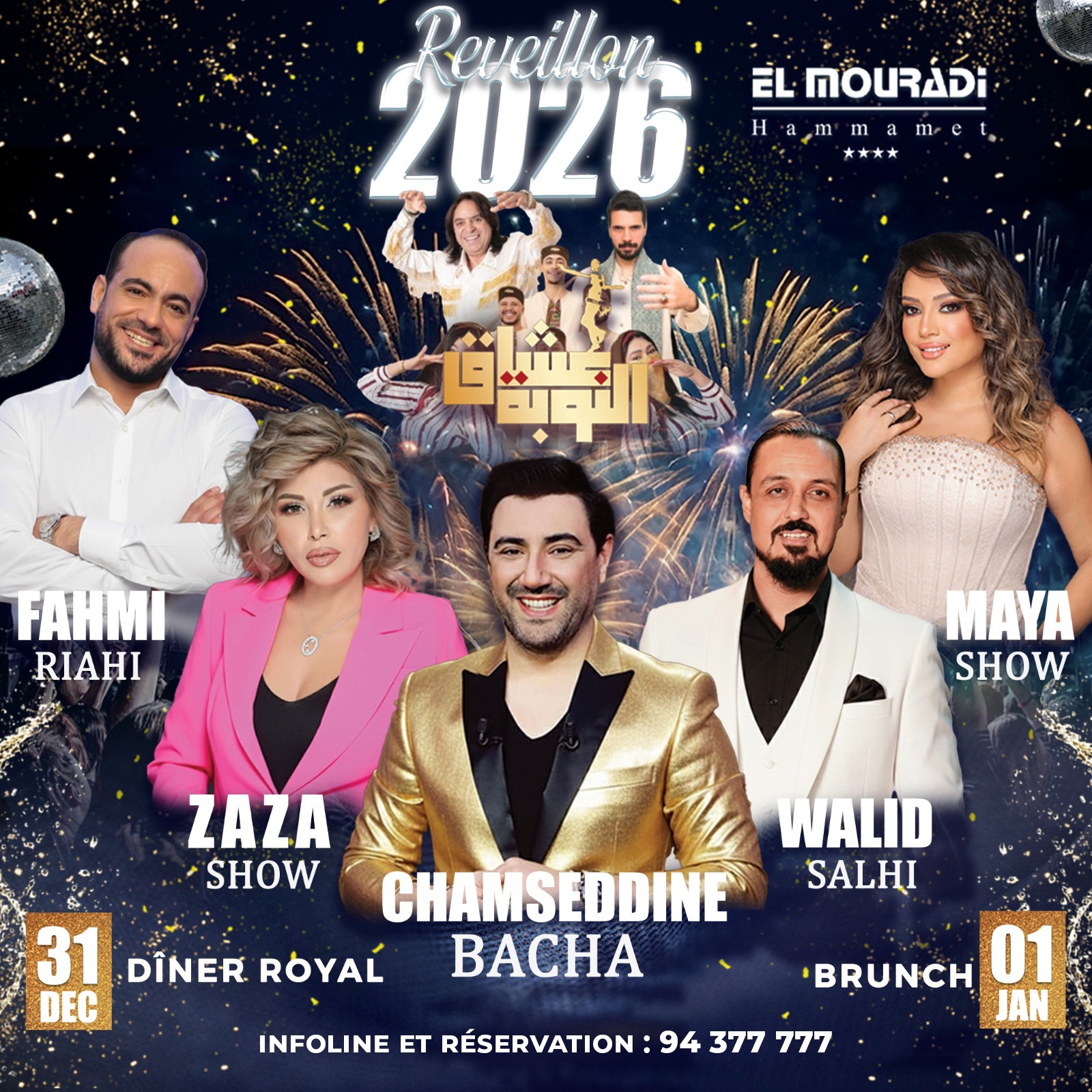 في فندق المرادي الحمامات 4 نجوم، ستقام سهرة استثنائية تتوزع على حدثين متوازيين، لتمنح الضيوف تجربة احتفالية غنية ومتنوعة.