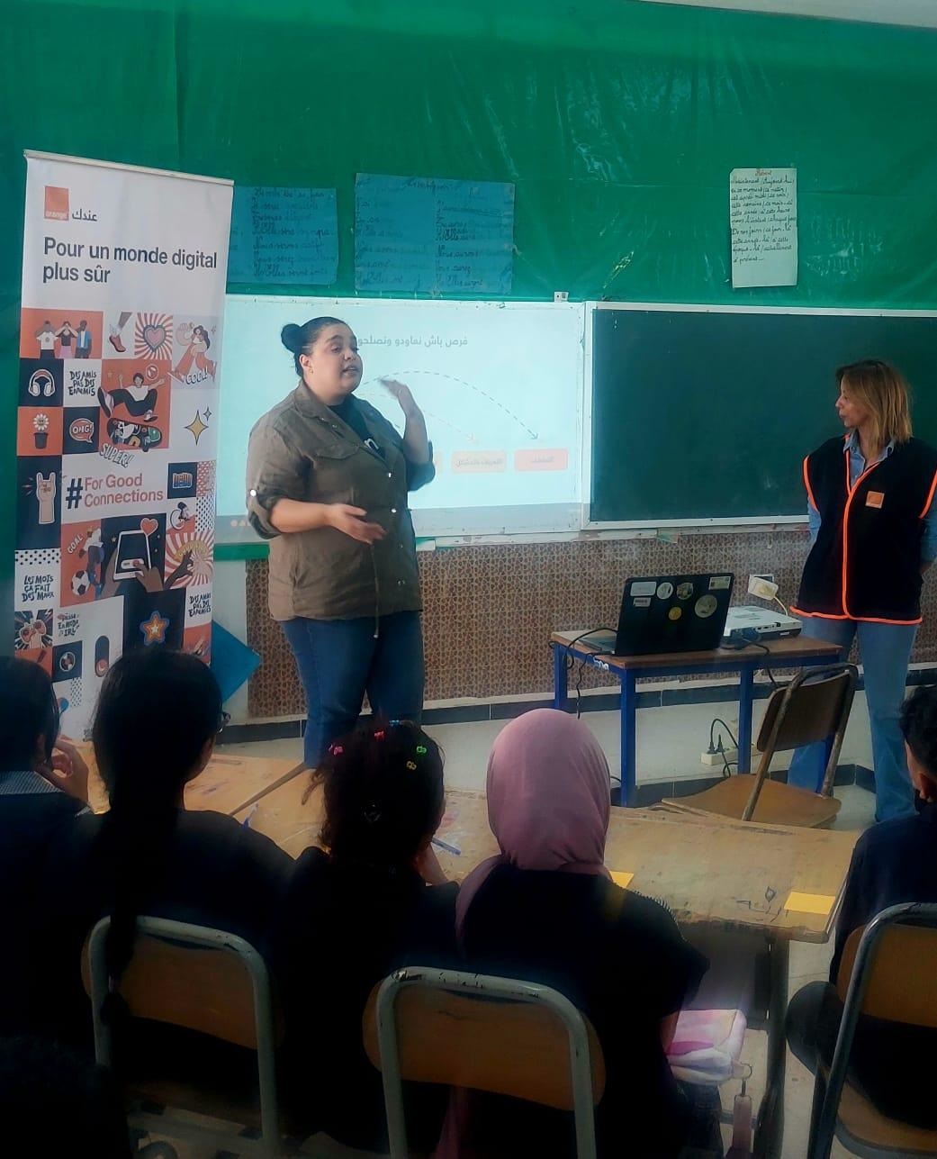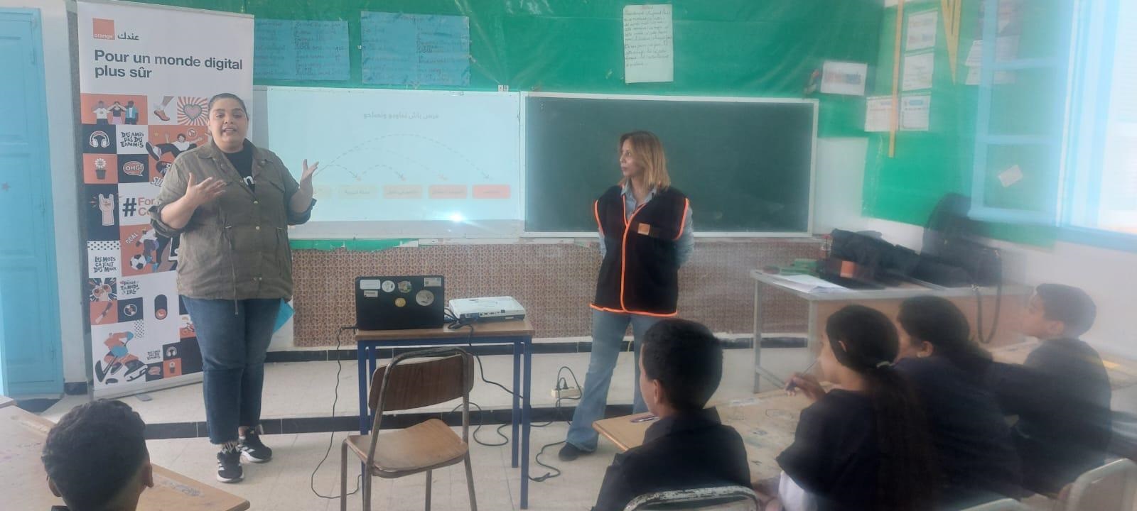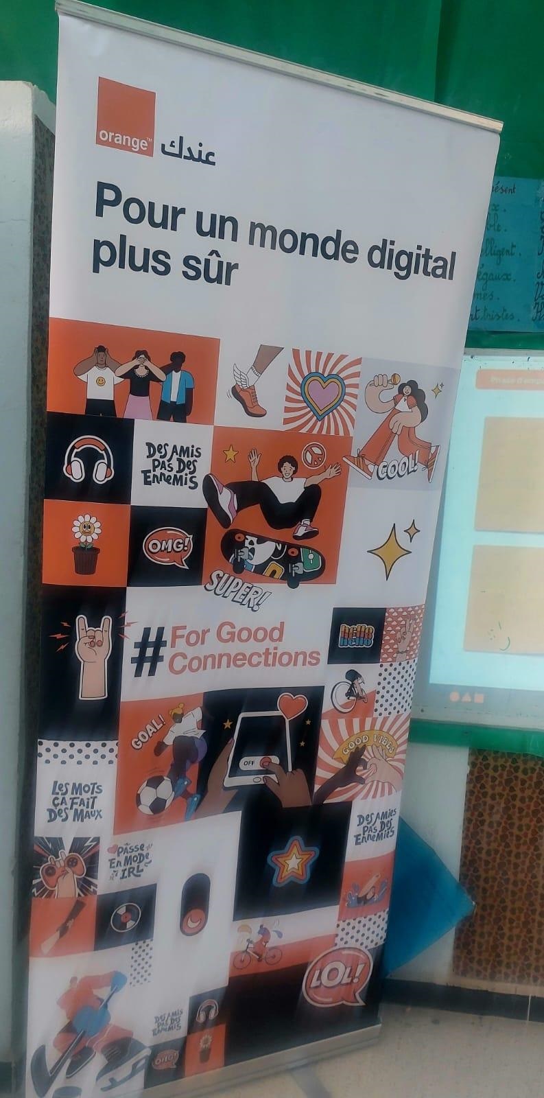 بالإضافة إلى الدورة التكوينية التي شملت الاطار التربوي والتلاميذ حول استخدامات اللوحات الرقمية التي تتضمن محتويات وبرامج رسمية معتمدة من وزراة التربية للمرحلة الابتدائية، تمّ القيام بنشاط تحسيسي وتوعوي ضمن برنامج For Good Connections ، وهي مبادرة وطنية أطلقتها أورنج تونس وشركائها وذلك للحدّ من استعمالات الشاشات والتحسيس بالمخاطر المرتبطة بالعالم الرقمي ونشر الوعي وتعزيز الأمان الرقمي لديهم وتدريبهم على حماية بياناتهم الشخصية وتبني سلوكيات رقميّة مسؤولة وأكثر إستدامة.