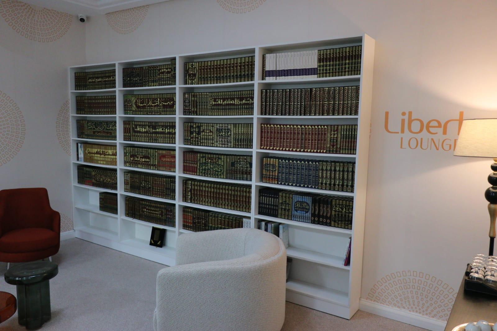 وقد زُوِّدت الصالة بمكتبة تثري تجربة الضيف بالمعرفة والمطالعة، لتصبح مكاناً يلبي التطلعات العملية والثقافية في آن واحد.