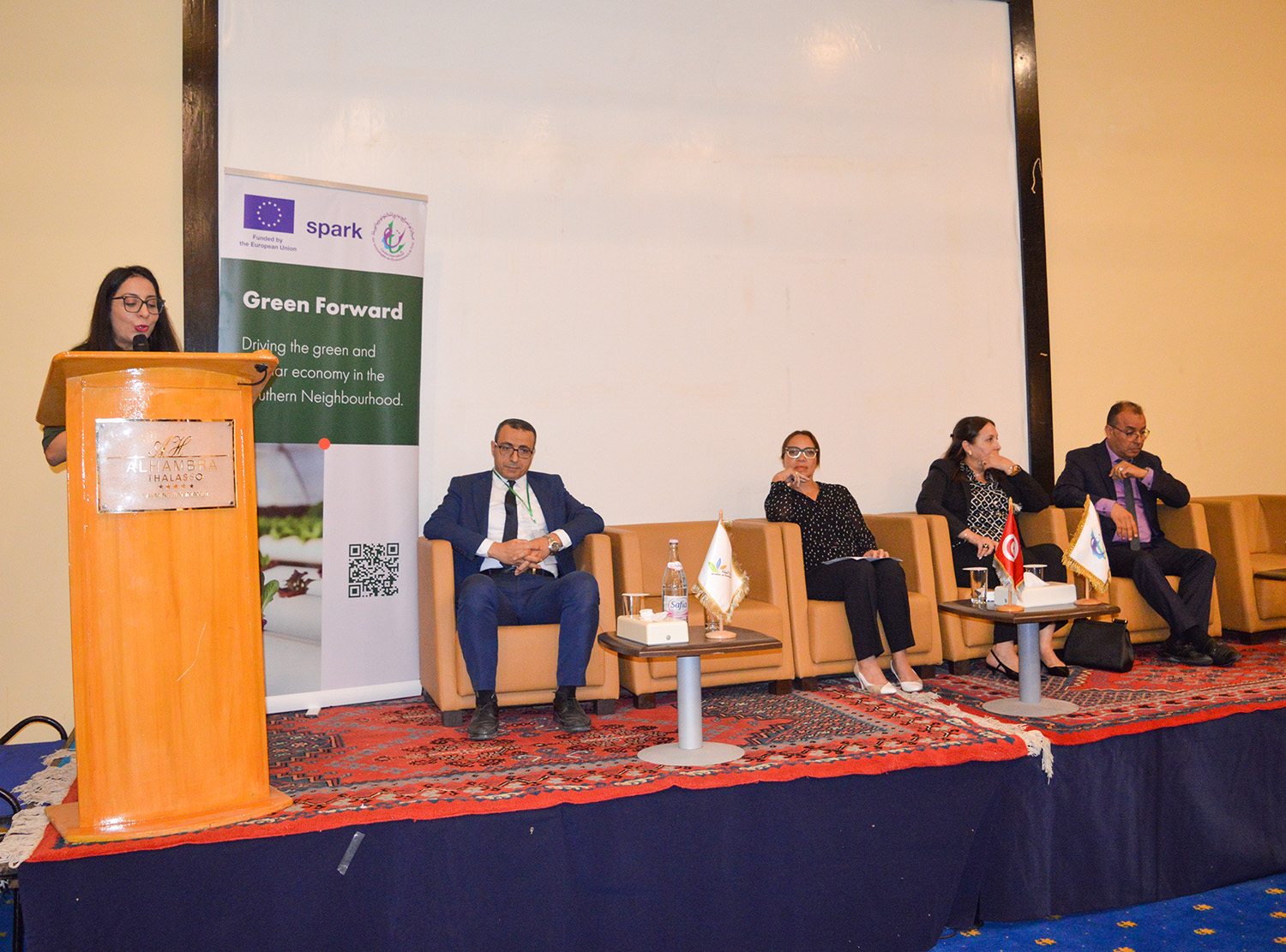 De son côté, Mme Afef Ajengui, responsable du programme régional Green Forward au niveau méso chez SPARK, a rappelé que « Au niveau méso, Green Forward vise à renforcer la capacité des OSE à favoriser les partenariats publics-privés, à relier les dialogues politiques et stratégiques à la préparation d’un terrain propice à une économie résiliente, verte et inclusive, et à améliorer l’accès au financement vert. »